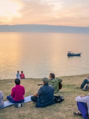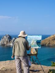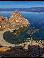 当有一天我们老去,让我们一起到贝加尔湖边归隐,搭建一个小木屋,劈柴、种地、喂马、垂钓,然后给孩子们讲过去的故事,在这神秘而清澈的贝加尔湖畔。离开贝加尔湖时,心里悄悄划过了这个小小而美好的愿望,这便是我所感知的贝加尔湖,一个可以让人安存时光的美丽地方……贝加尔湖,位于俄罗斯东西伯利亚南部,是世界上年代最久的湖泊,也是地球上深度最深、蓄水量最大的淡水湖,它蕴藏着地球上约1/5的淡水资源,被誉为“西伯利亚的明眸”。前往贝加尔湖的最佳方式就是从距离它大约400千米的城市伊尔库茨克出发。6个小时的车程之后,车窗外忽然出现了一弯湛蓝,在一片黄色的山丘之中,陡然生出一颗蓝色眼泪,璀然夺目。这颗蓝色眼泪在阳光的照耀下变幻着夺目的色彩,或因水气笼罩幻化出一片迷离的梦幻蓝,或因微风轻抚荡漾出一片绚烂的深邃蓝。偶尔几只西伯利亚红嘴鸥从湖面一跃飞起,架接起天与水的对话,直叫人感叹这大自然的神来之笔。旅行中最激动人心的,便是曾经在你耳边在你眼前千回百绕的地名,有一天真出现在你的眼前,像是一场久违的约会,虽是新人,却似旧故。我从远方赶来,赴你一面之约。