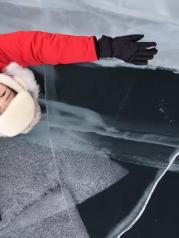 不可否认,多少来贝加尔湖的人是为了看蓝冰而来,我们几个也不例外,今天是贝加尔湖的北线之旅。这条线可以看到非常壮观的蓝冰。司机小哥把汽车音量调到最大,节奏感强烈的俄罗斯音乐充斥了我们的耳朵,一路飞驰,在冰面上飞驰,如履平地。当看到蓝冰,还以为走进了童话世界,冰雪奇缘。一层一层的蓝,夹带着雪,不断推向远方,和天相结。分不清到底是云还是雪,是冰还是天。见此美景,此行无憾。